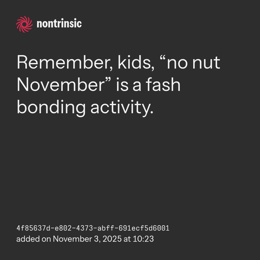 shareRemember, kids, “no nut November” is a fash bonding activity.