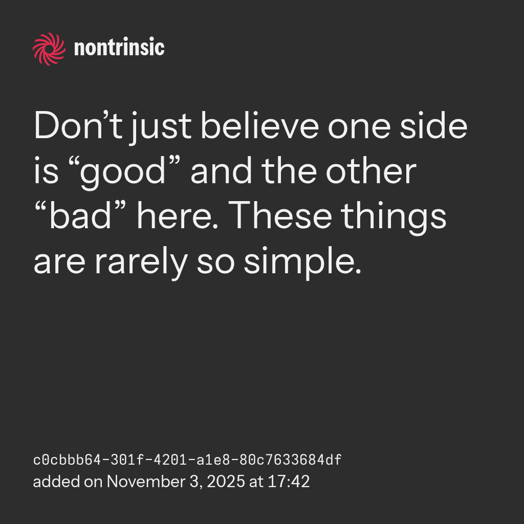 shareDon’t just believe one side is “good” and the other “bad” here. These things are rarely so simple.
