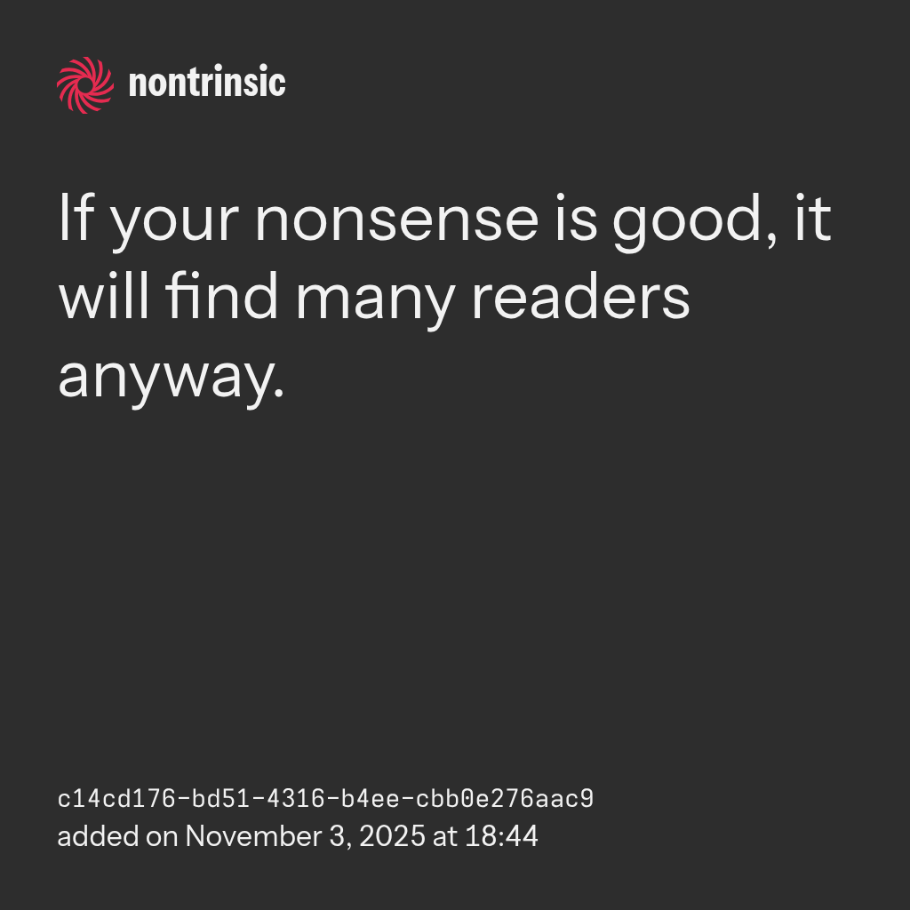 shareIf your nonsense is good, it will find many readers anyway.
