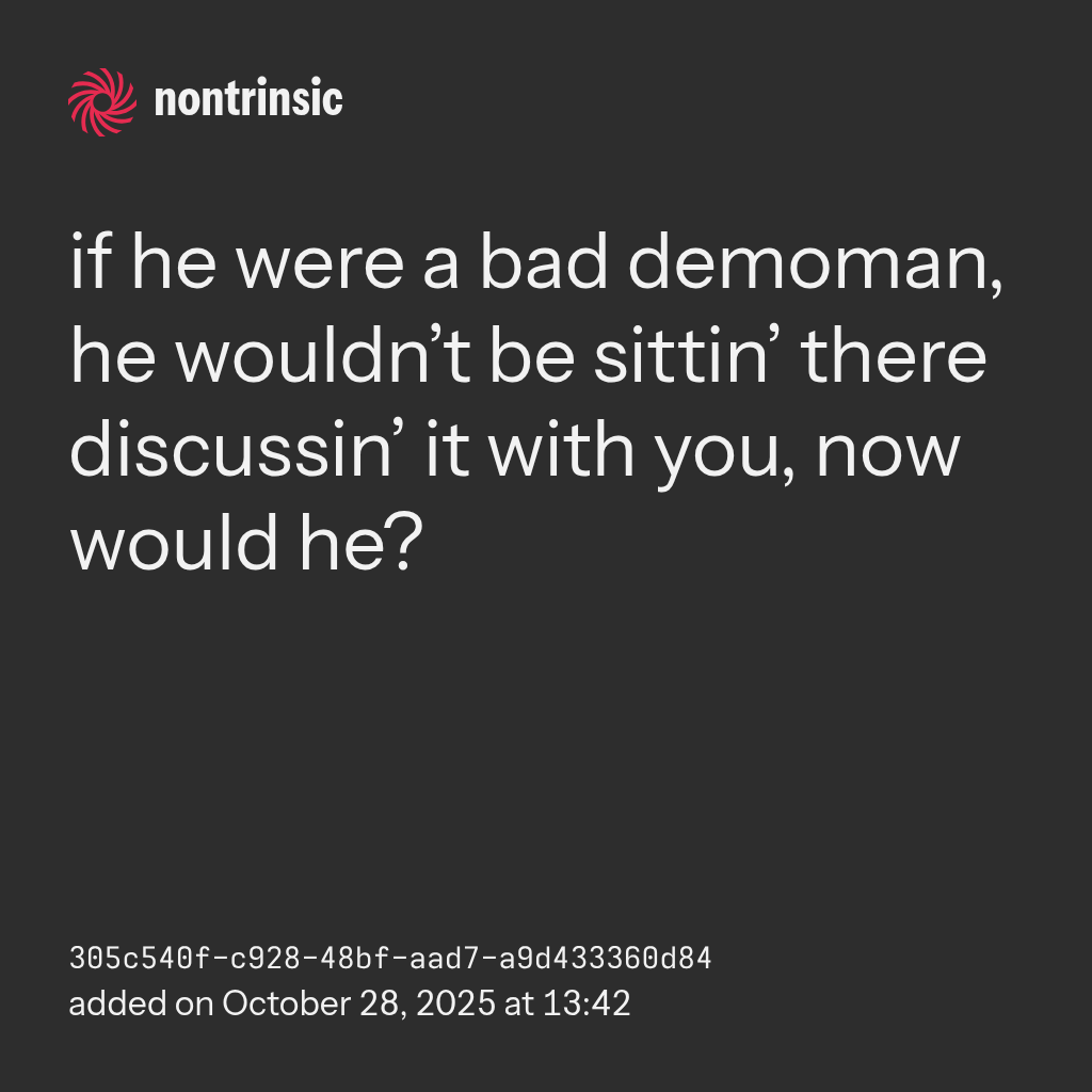 shareif he were a bad demoman, he wouldn’t be sittin’ there discussin’ it with you, now would he?