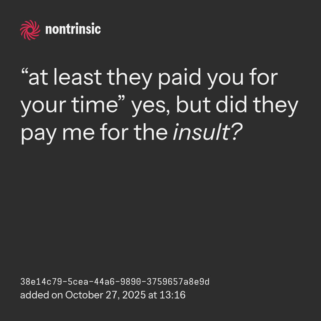 share“at least they paid you for your time” yes, but did they pay me for the insult?