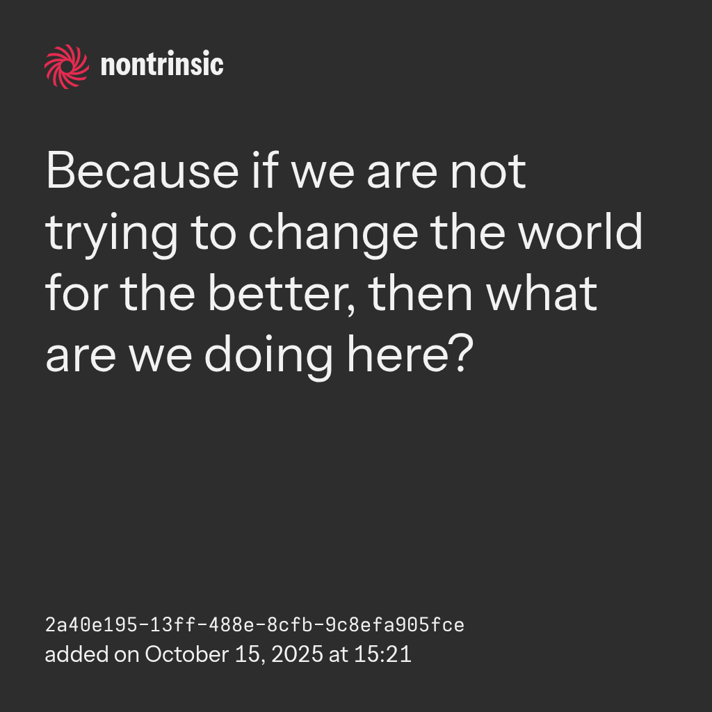 shareBecause if we are not trying to change the world for the better, then what are we doing here?
