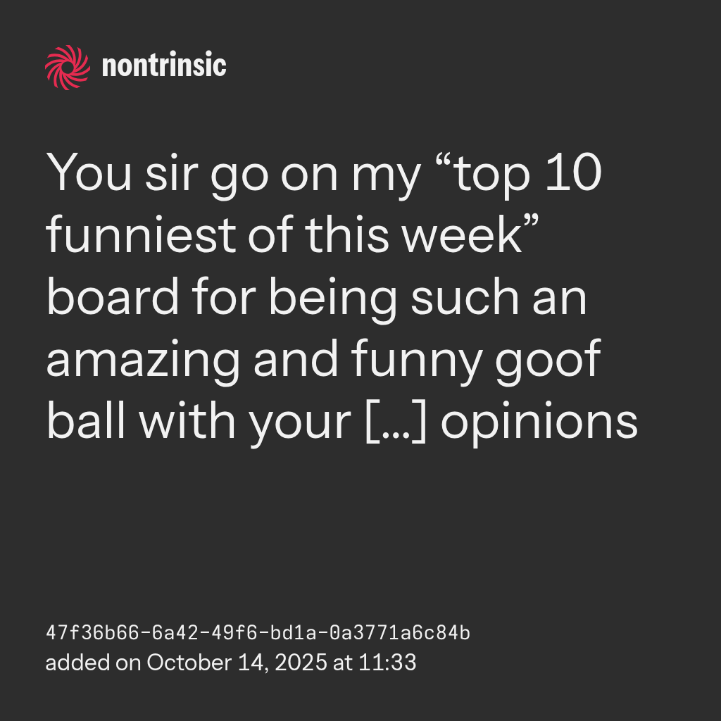 shareYou sir go on my “top 10 funniest of this week” board for being such an amazing and funny goof ball with your […] opinions