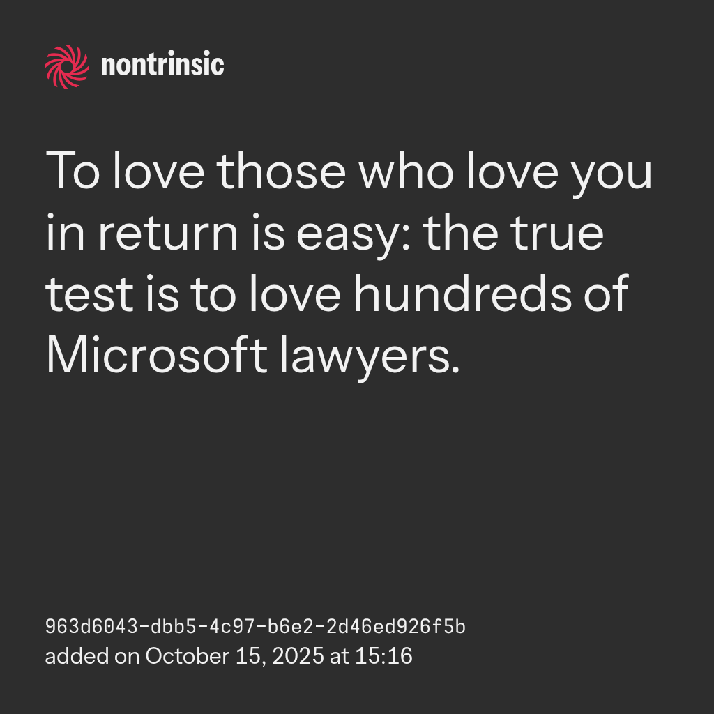 shareTo love those who love you in return is easy: the true test is to love hundreds of Microsoft lawyers.