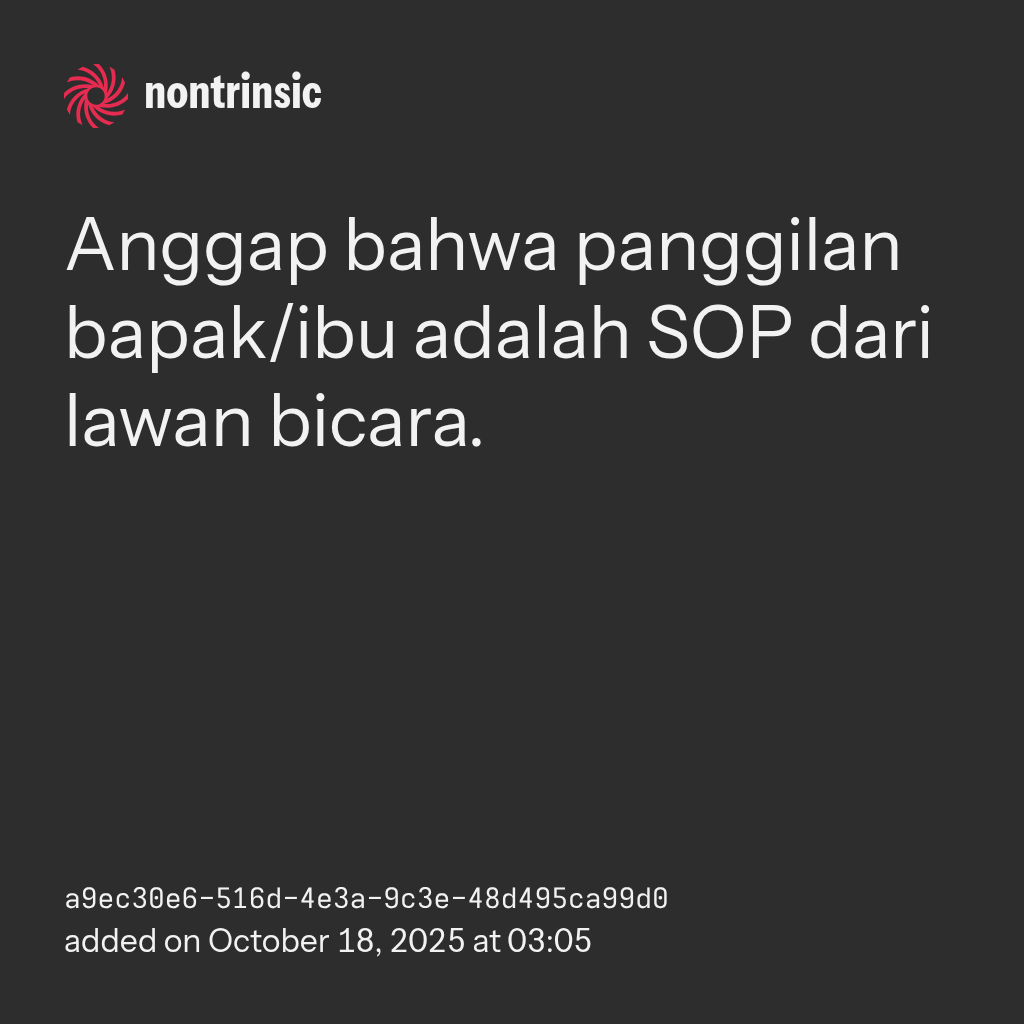 shareAnggap bahwa panggilan bapak/ibu adalah SOP dari lawan bicara.