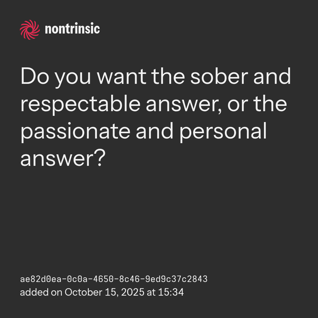 shareDo you want the sober and respectable answer, or the passionate and personal answer?