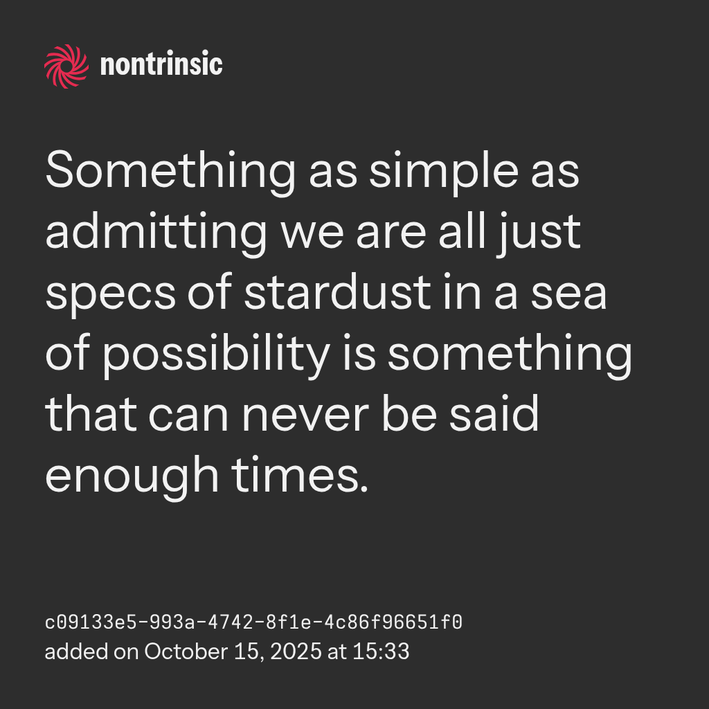 shareSomething as simple as admitting we are all just specs of stardust in a sea of possibility is something that can never be said enough times.