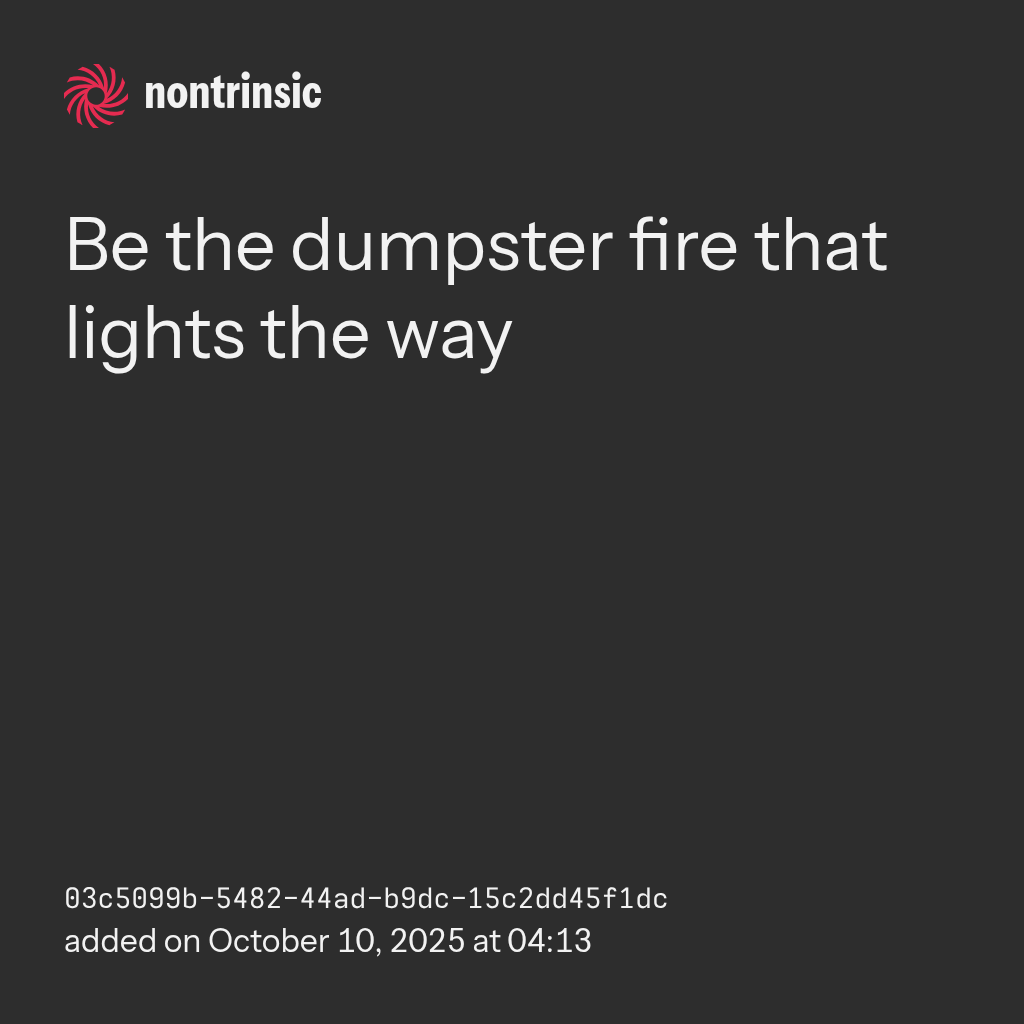 shareBe the dumpster fire that lights the way