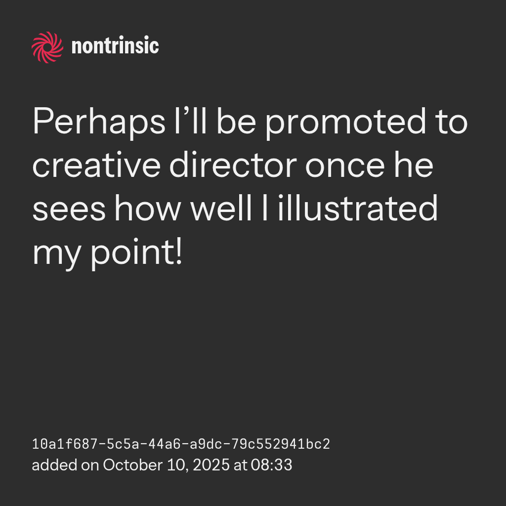 sharePerhaps I’ll be promoted to creative director once he sees how well I illustrated my point!