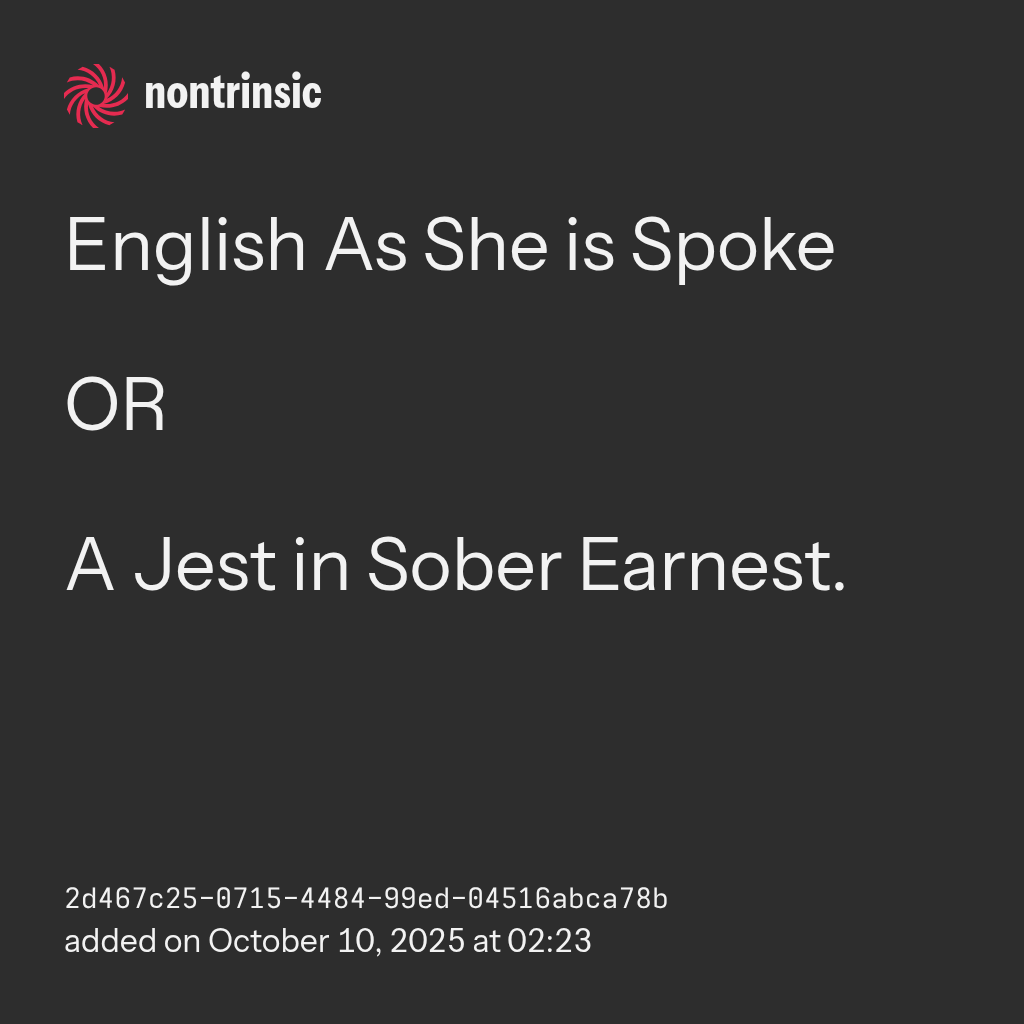 A Jest in Sober Earnest.