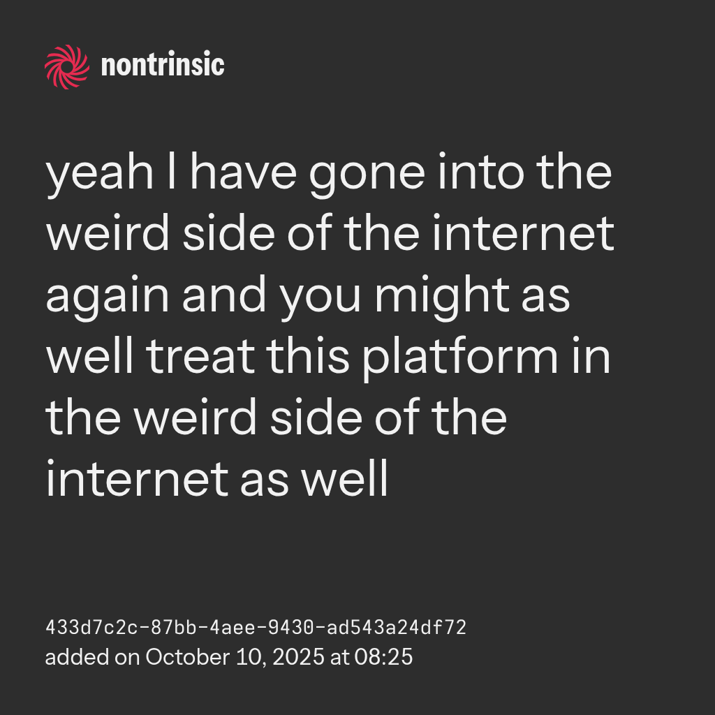 shareyeah I have gone into the weird side of the internet again and you might as well treat this platform in the weird side of the internet as well