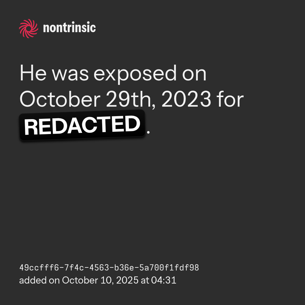 shareHe was exposed on October 29th, 2023 for REDACTED.
