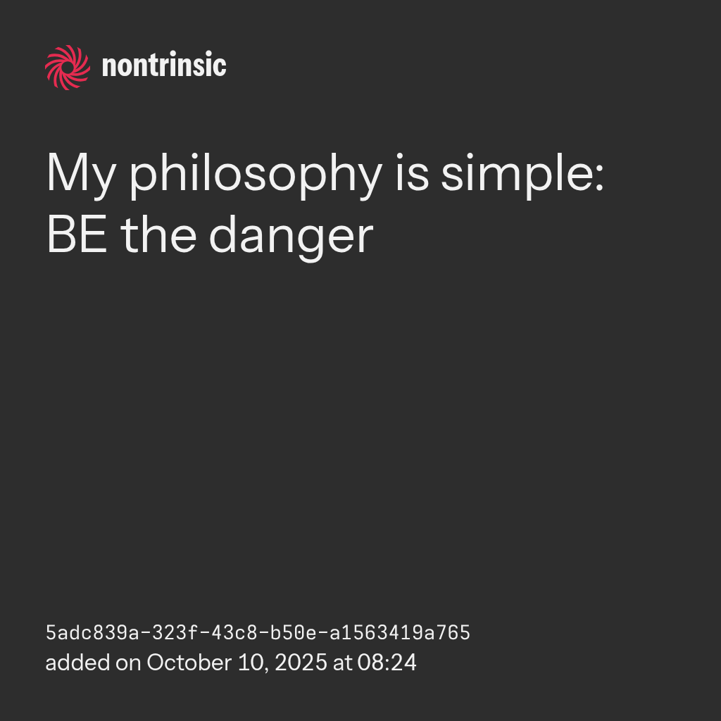 shareMy philosophy is simple: BE the danger