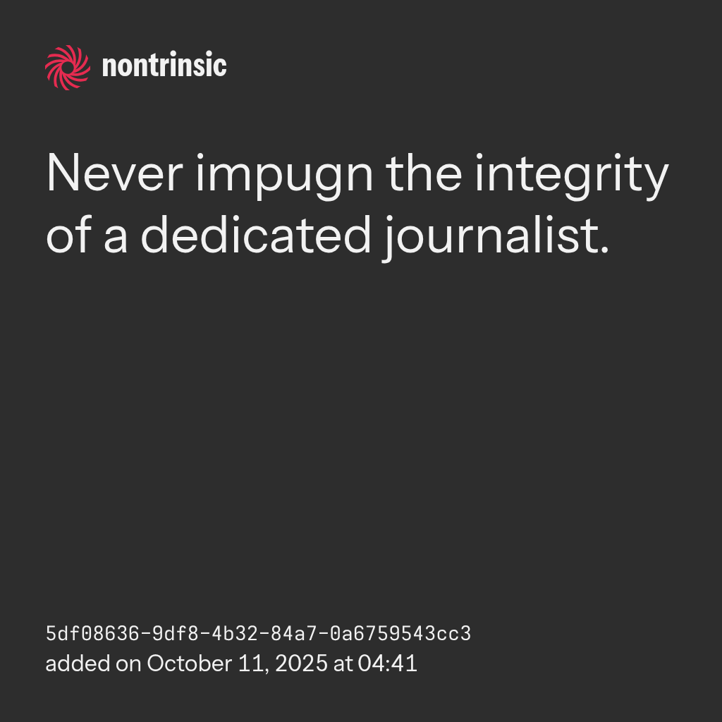 Never impugn the integrity of a dedicated journalist.