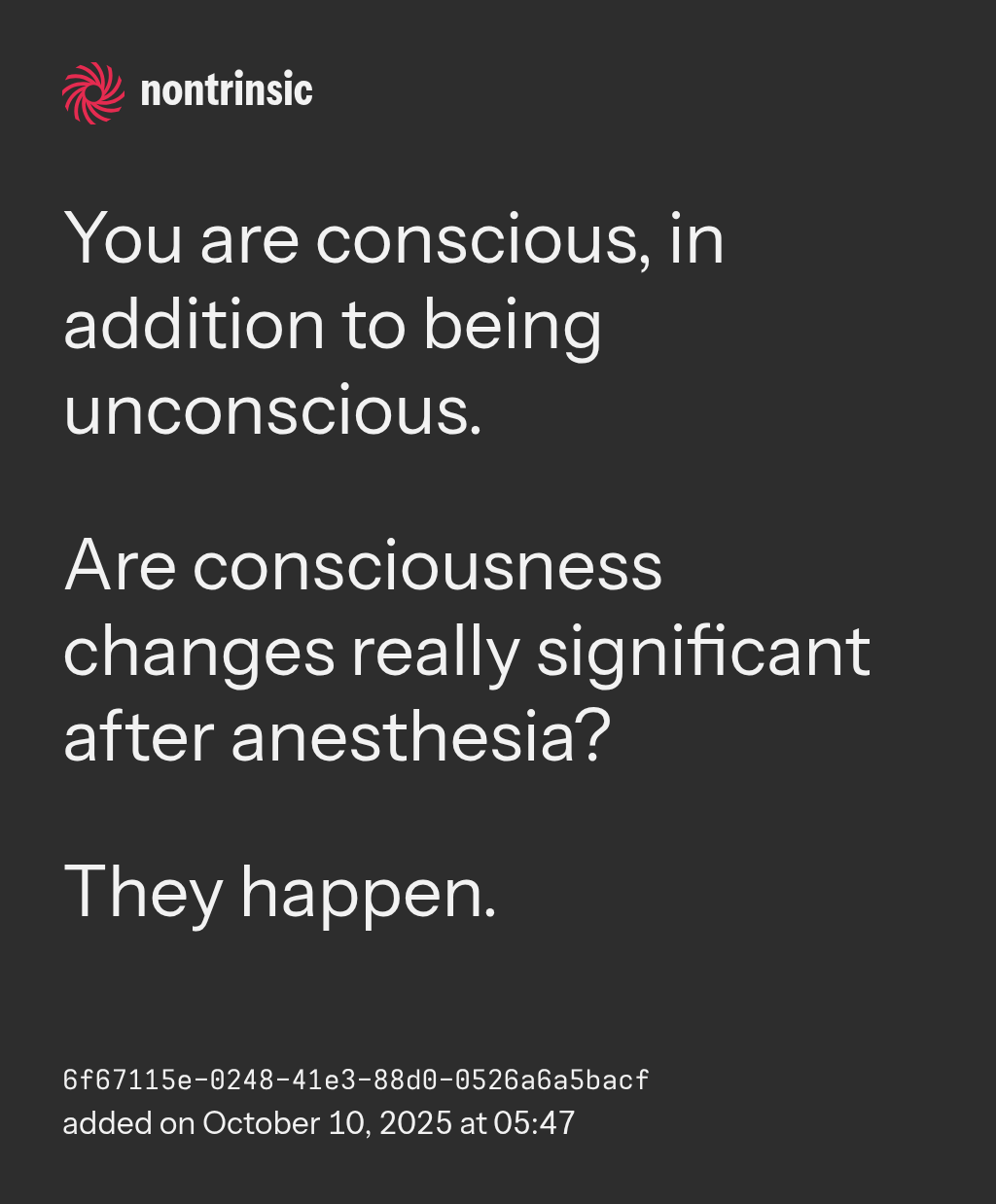 shareYou are conscious, in addition to being unconscious.