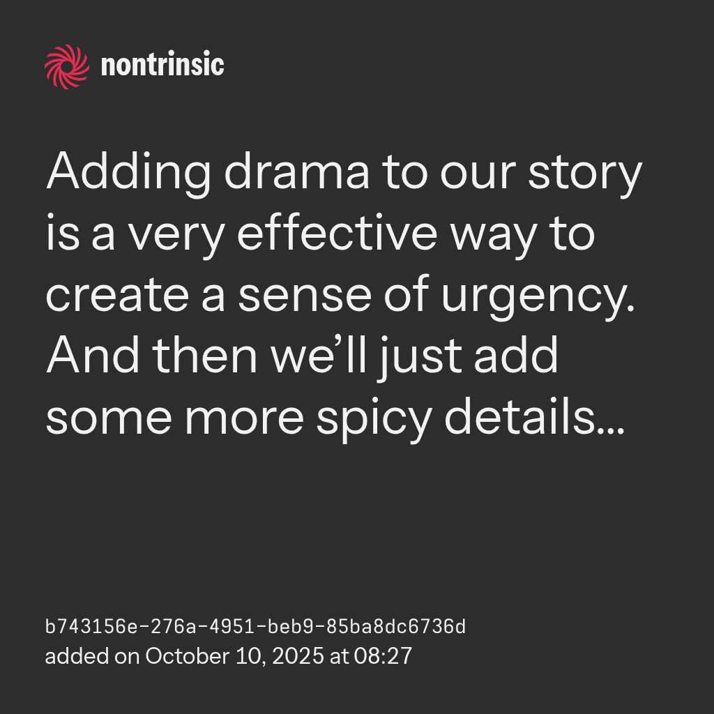 shareAdding drama to our story is a very effective way to create a sense of urgency. And then we’ll just add some more spicy details…
