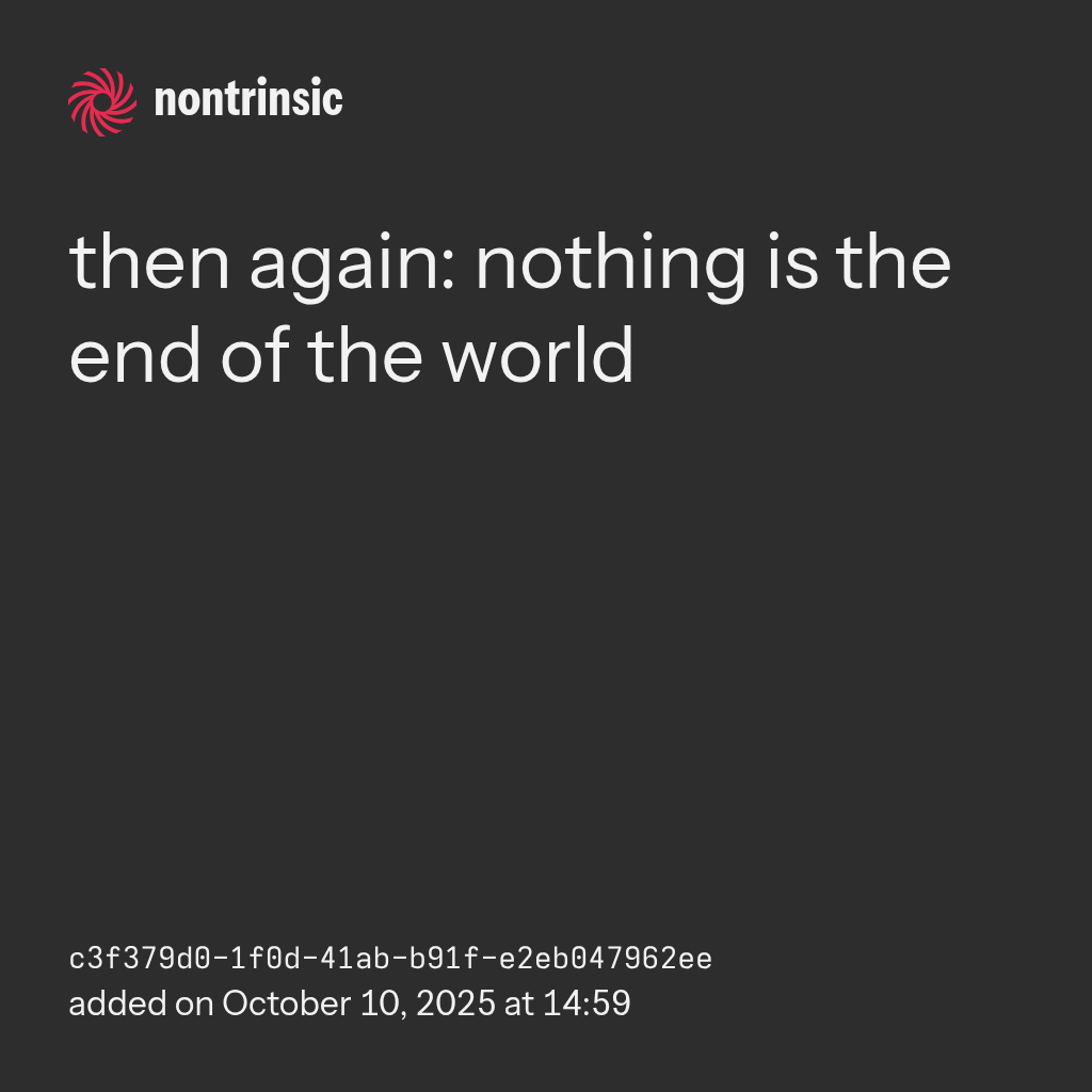 sharethen again: nothing is the end of the world