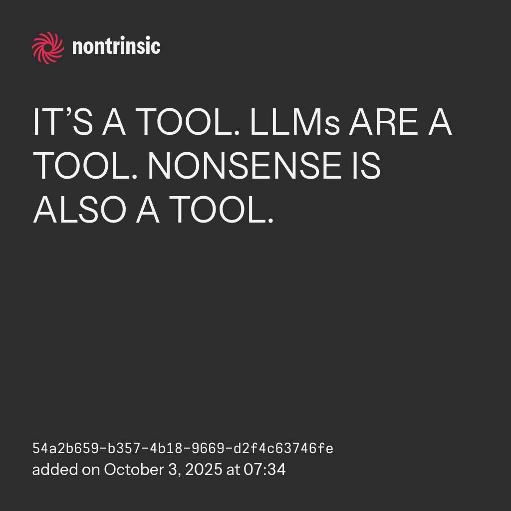 shareIT’S A TOOL. LLMs ARE A TOOL. NONSENSE IS ALSO A TOOL.