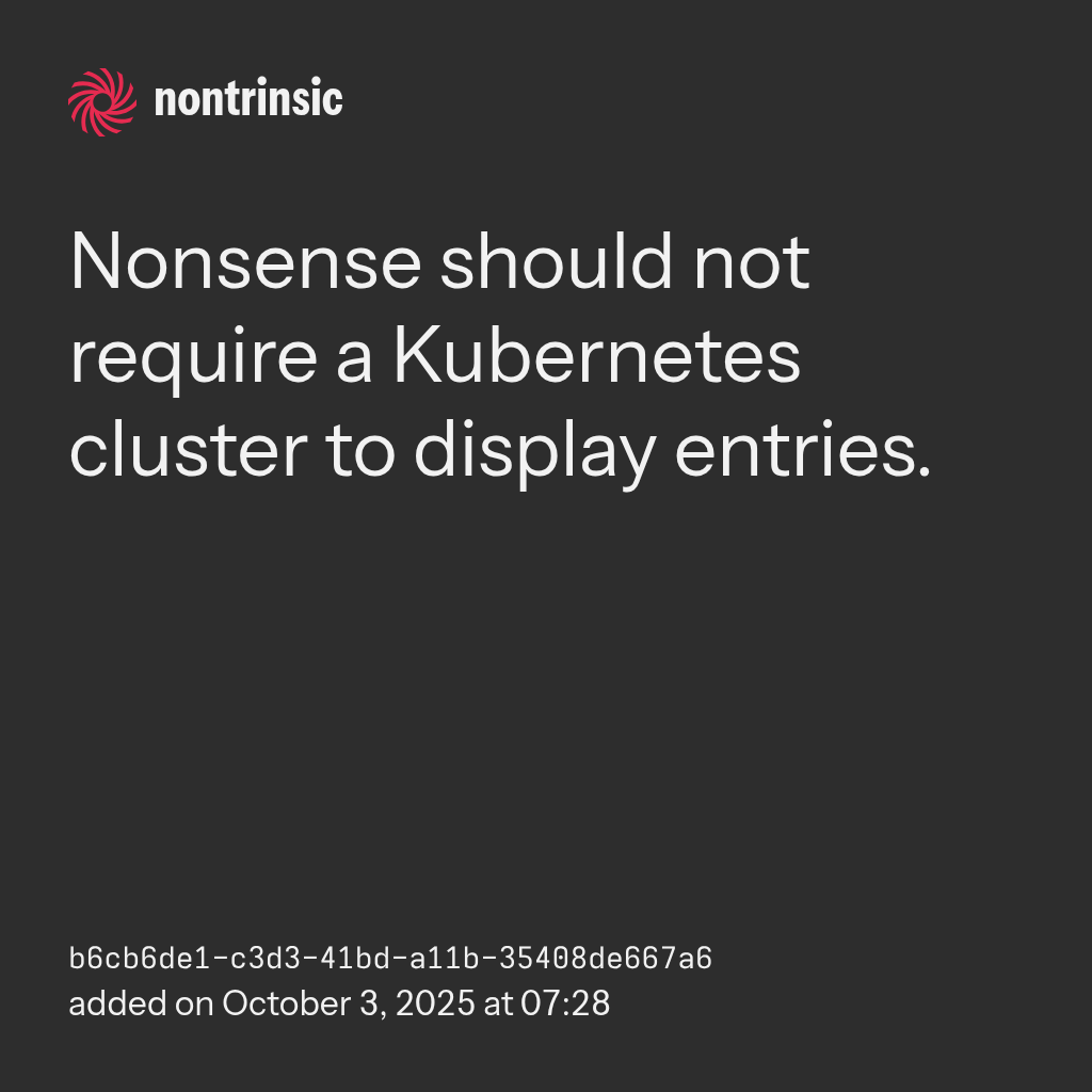 shareNonsense should not require a Kubernetes cluster to display entries.