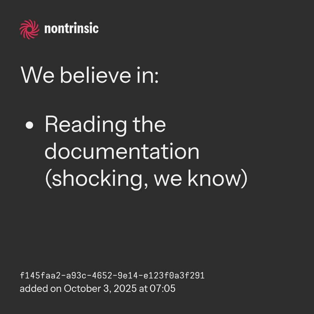 - Reading the documentation (shocking, we know)