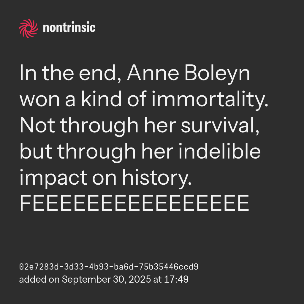 shareIn the end, Anne Boleyn won a kind of immortality. Not through her survival, but through her indelible impact on history. FEEEEEEEEEEEEEEEE