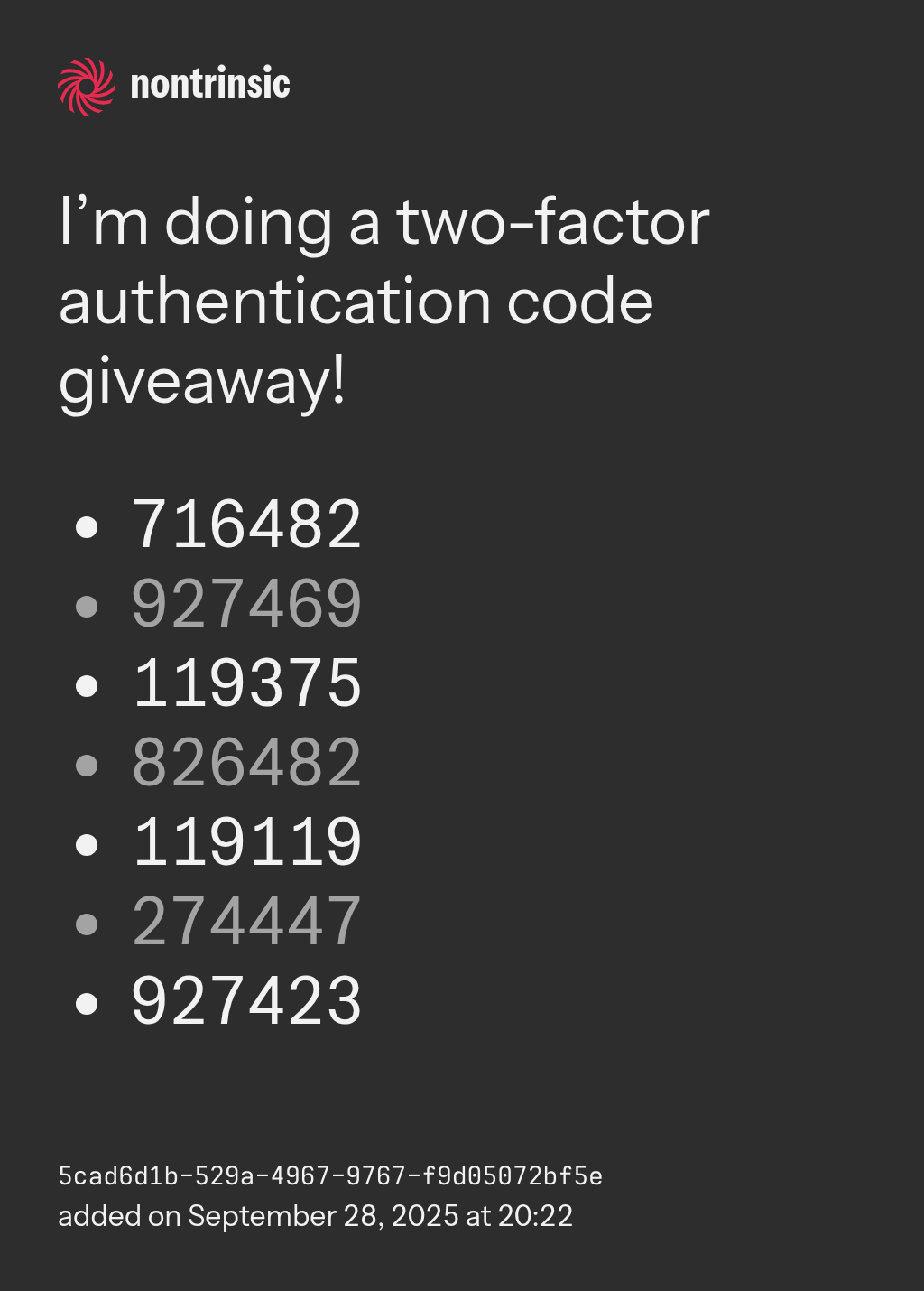 shareI’m doing a two-factor authentication code giveaway!
