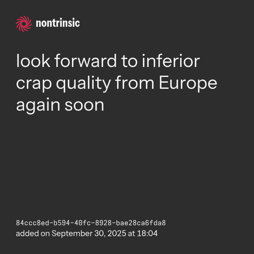 sharelook forward to inferior crap quality from Europe again soon
