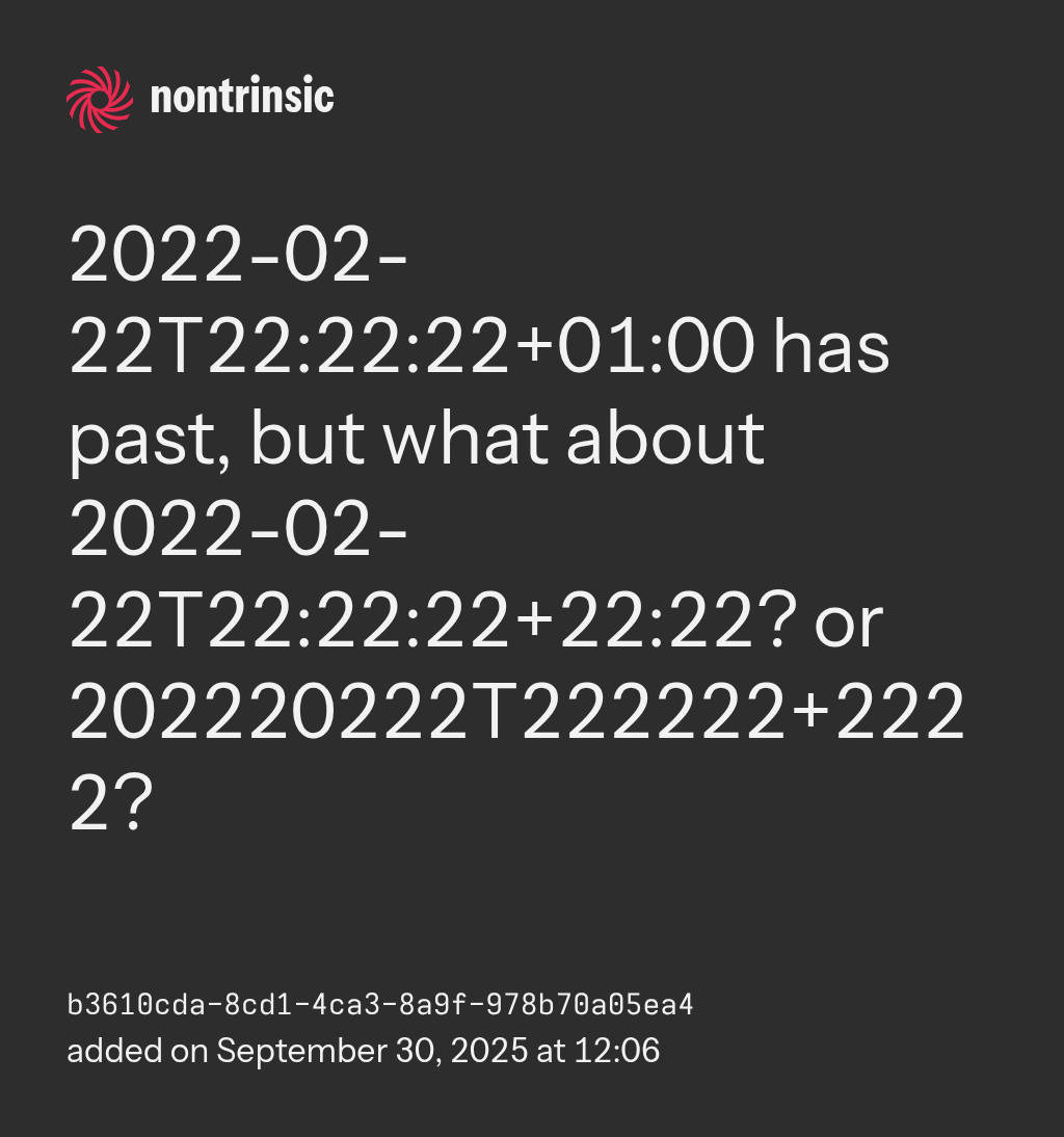 share2022-02-22T22:22:22+01:00 has past, but what about 2022-02-22T22:22:22+22:22? or 202220222T222222+2222?