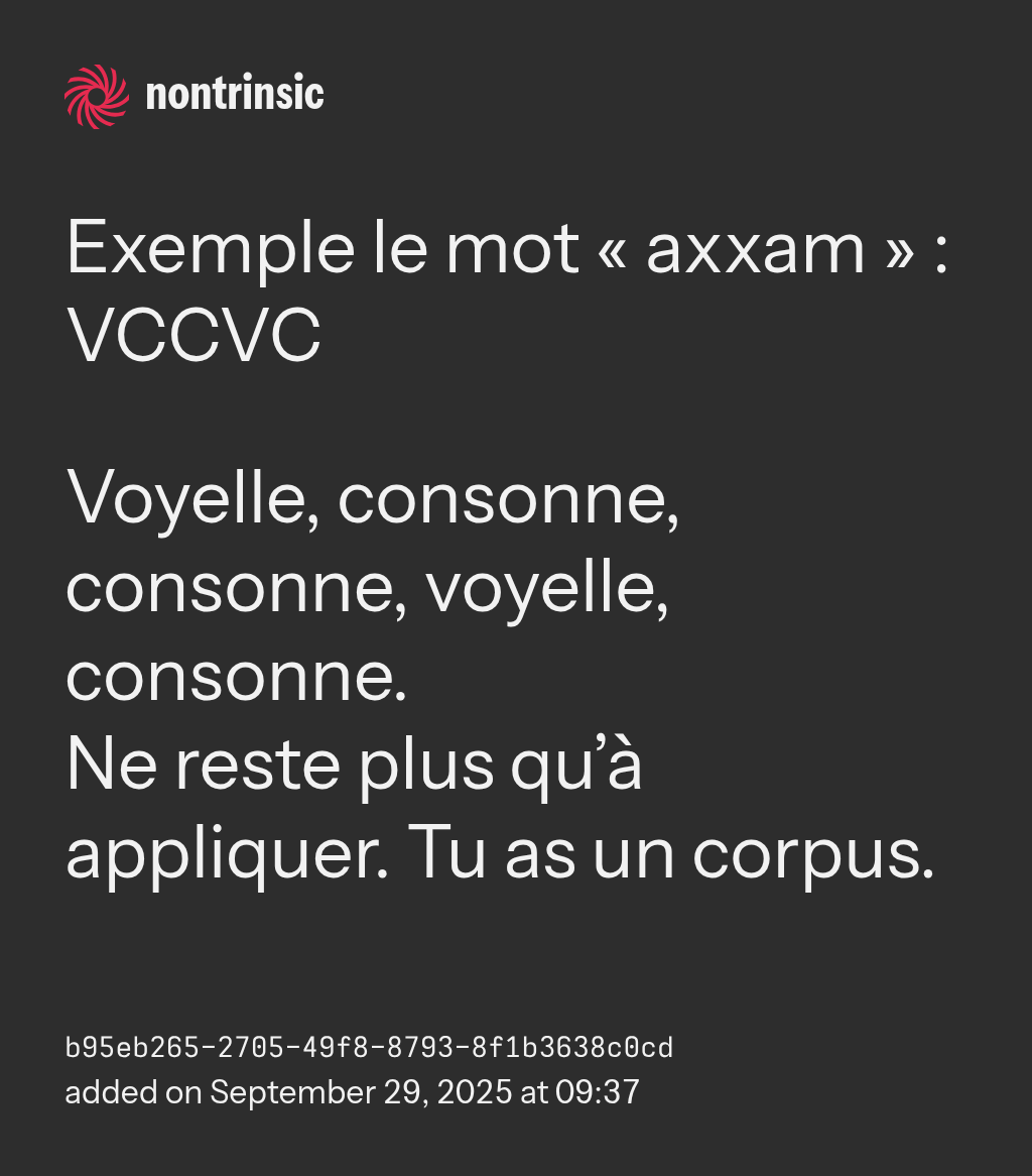 shareExemple le mot « axxam » : VCCVC