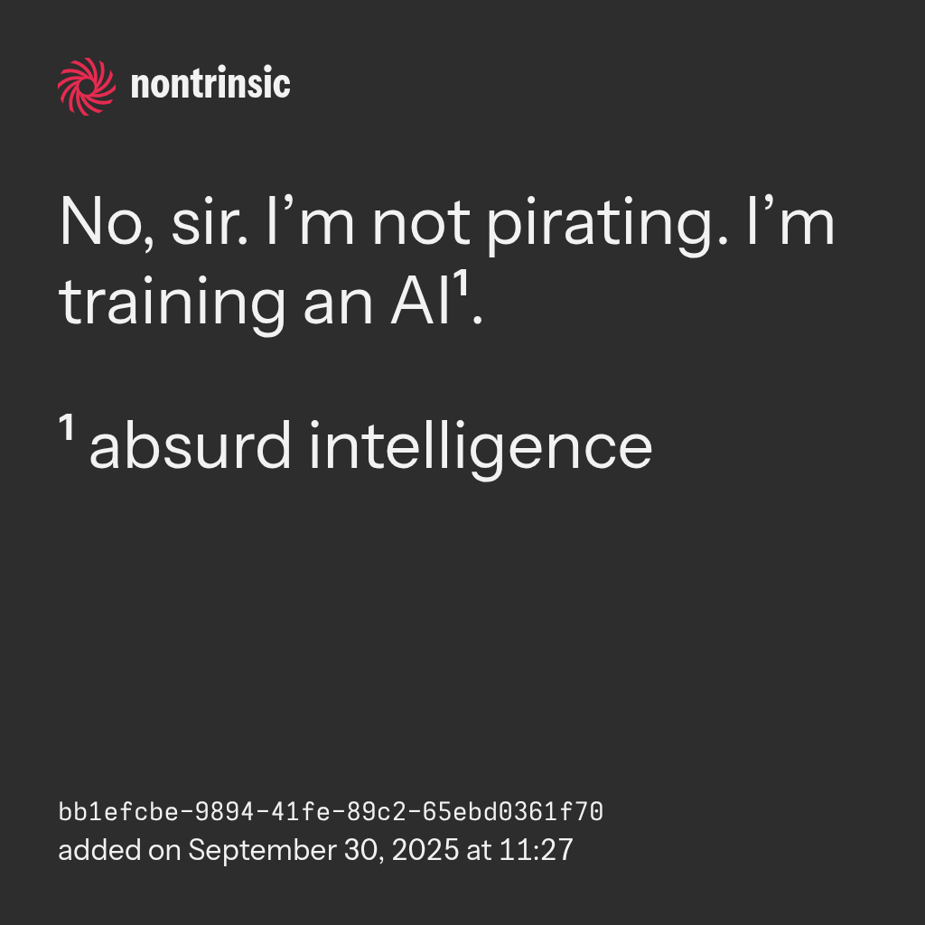 shareNo, sir. I’m not pirating. I’m training an AI¹.
