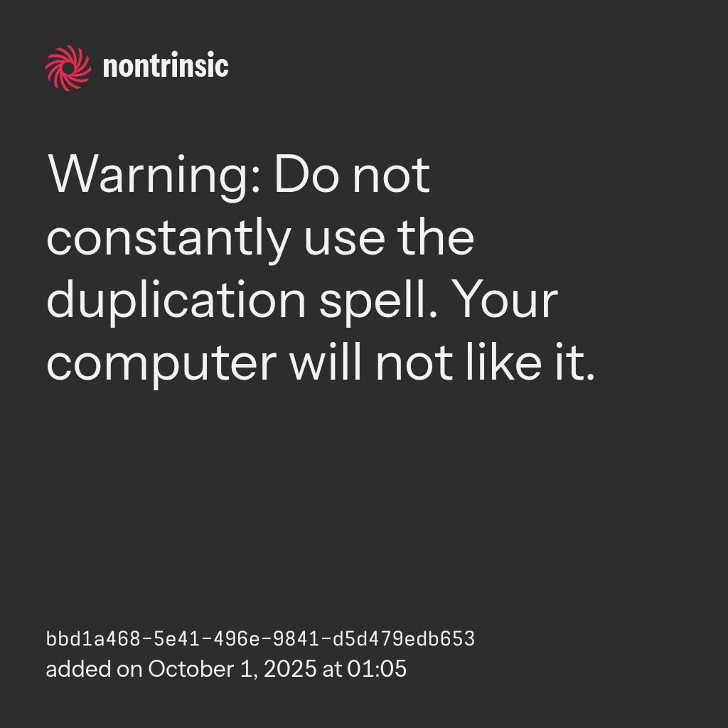shareWarning: Do not constantly use the duplication spell. Your computer will not like it.