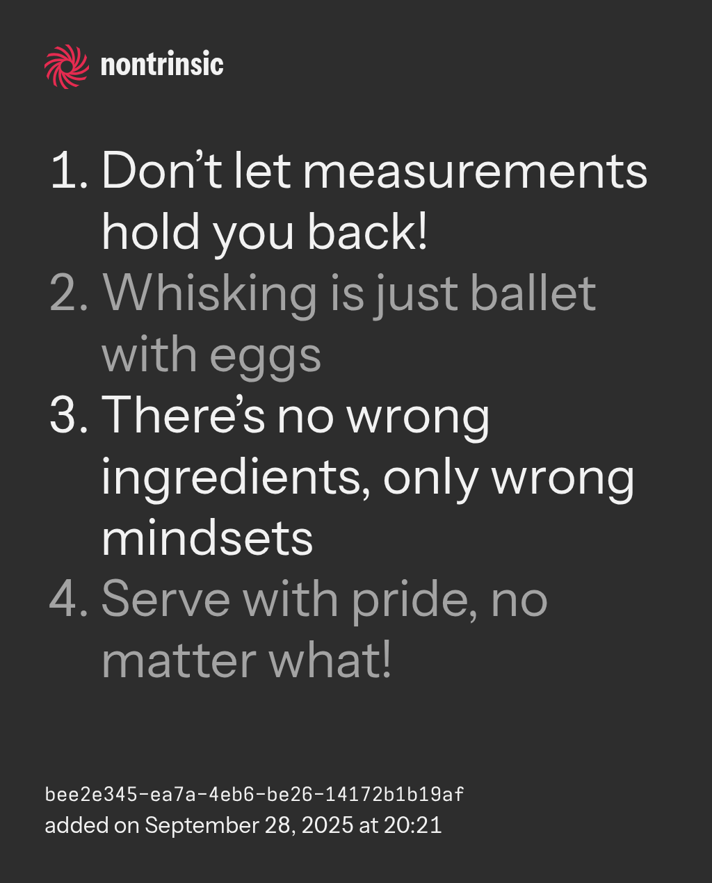 - There’s no wrong ingredients, only wrong mindsets