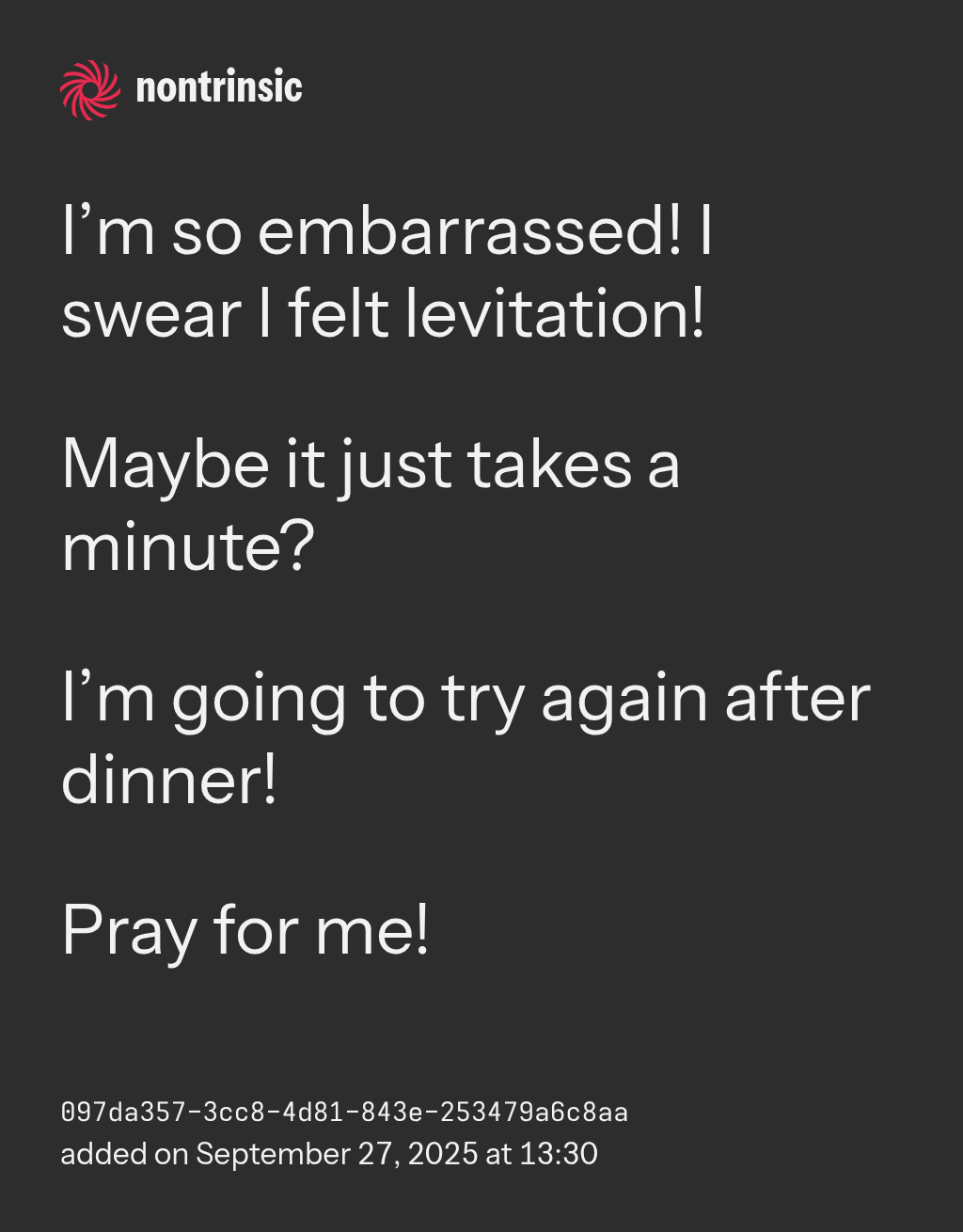 shareI’m so embarrassed! I swear I felt levitation!