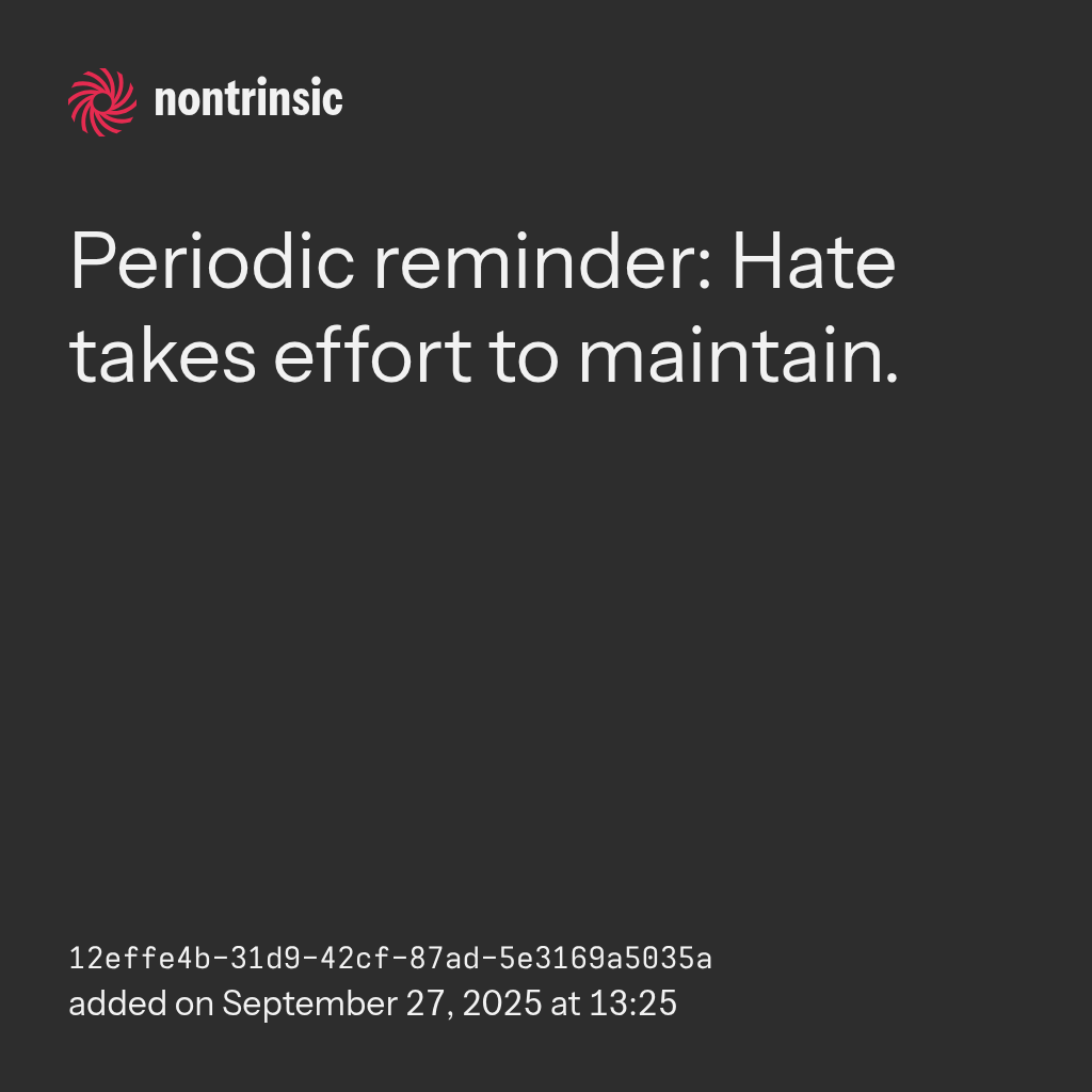 sharePeriodic reminder: Hate takes effort to maintain.