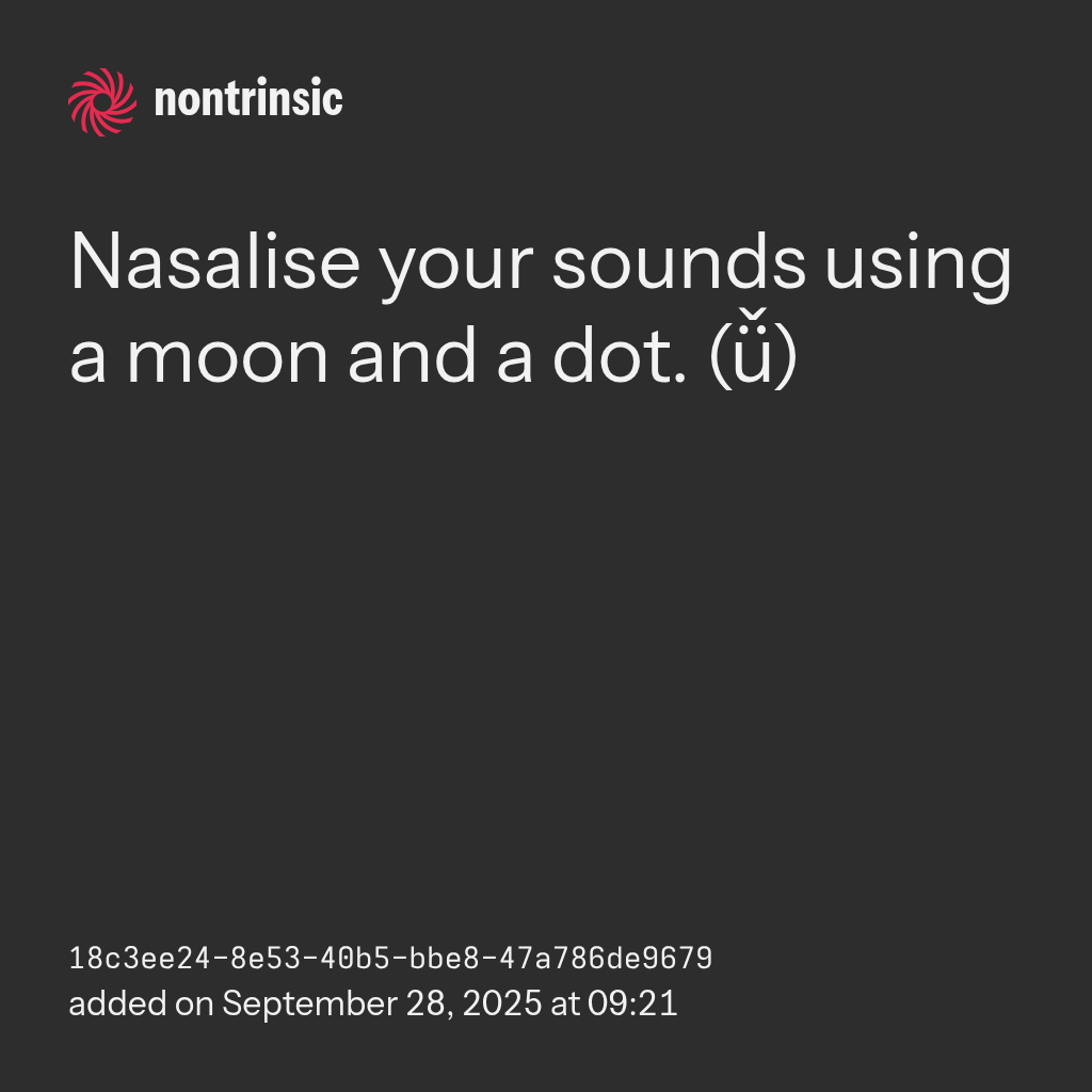 shareNasalise your sounds using a moon and a dot. (ǚ)