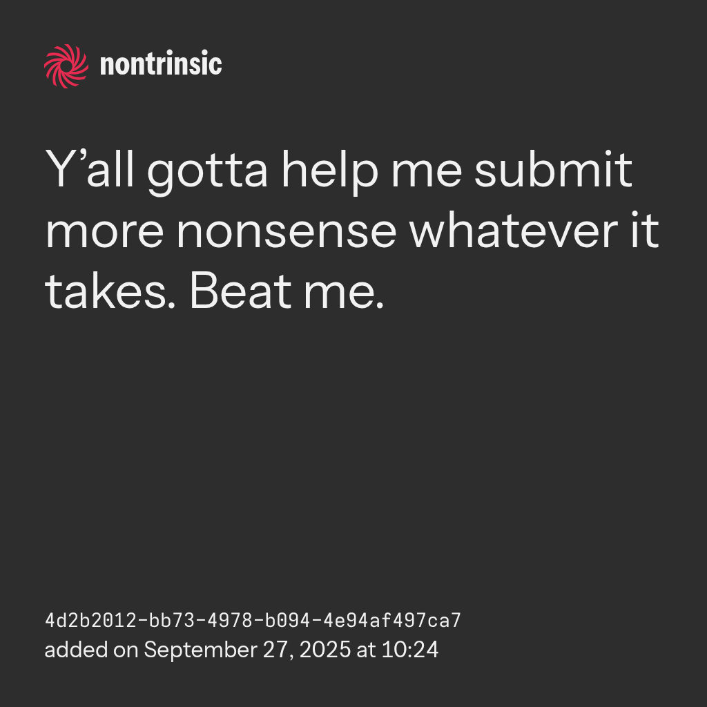 shareY’all gotta help me submit more nonsense whatever it takes. Beat me.