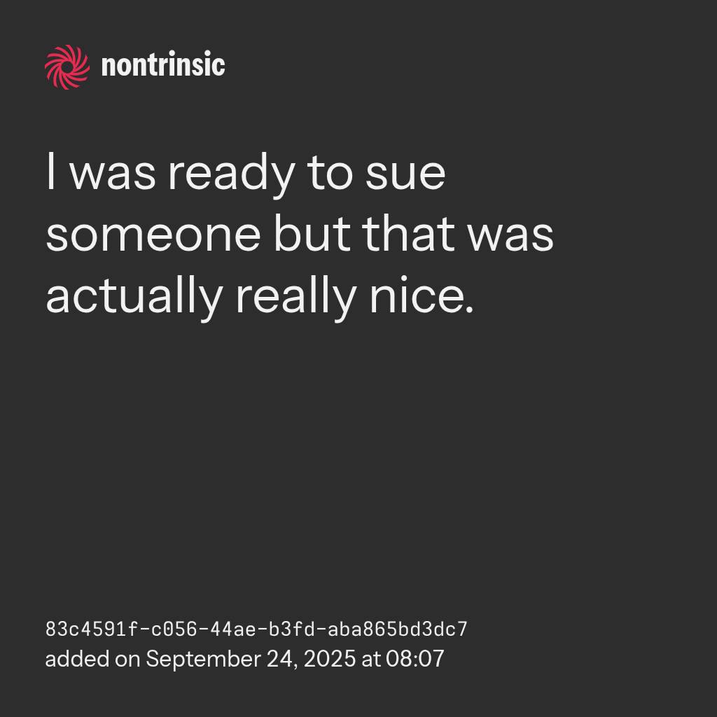 shareI was ready to sue someone but that was actually really nice.