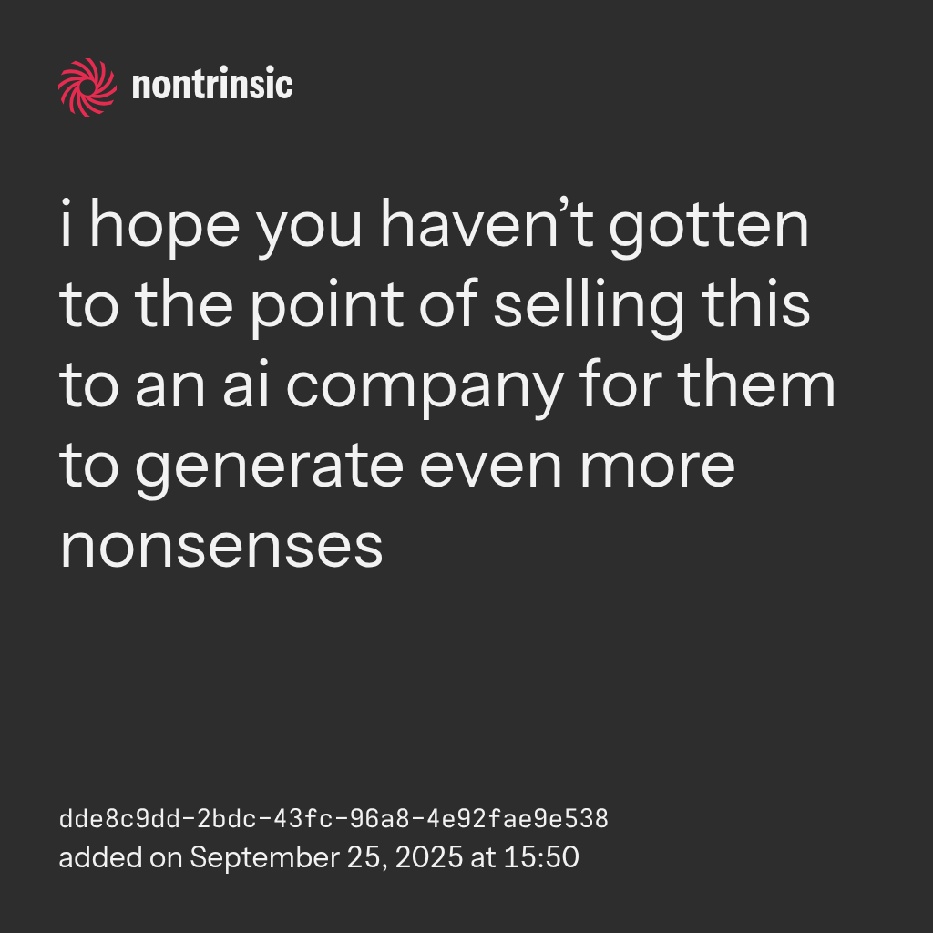 sharei hope you haven’t gotten to the point of selling this to an ai company for them to generate even more nonsenses