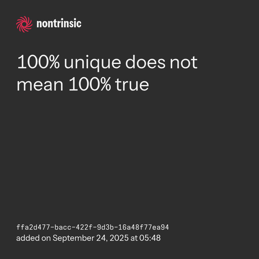 share100% unique does not mean 100% true