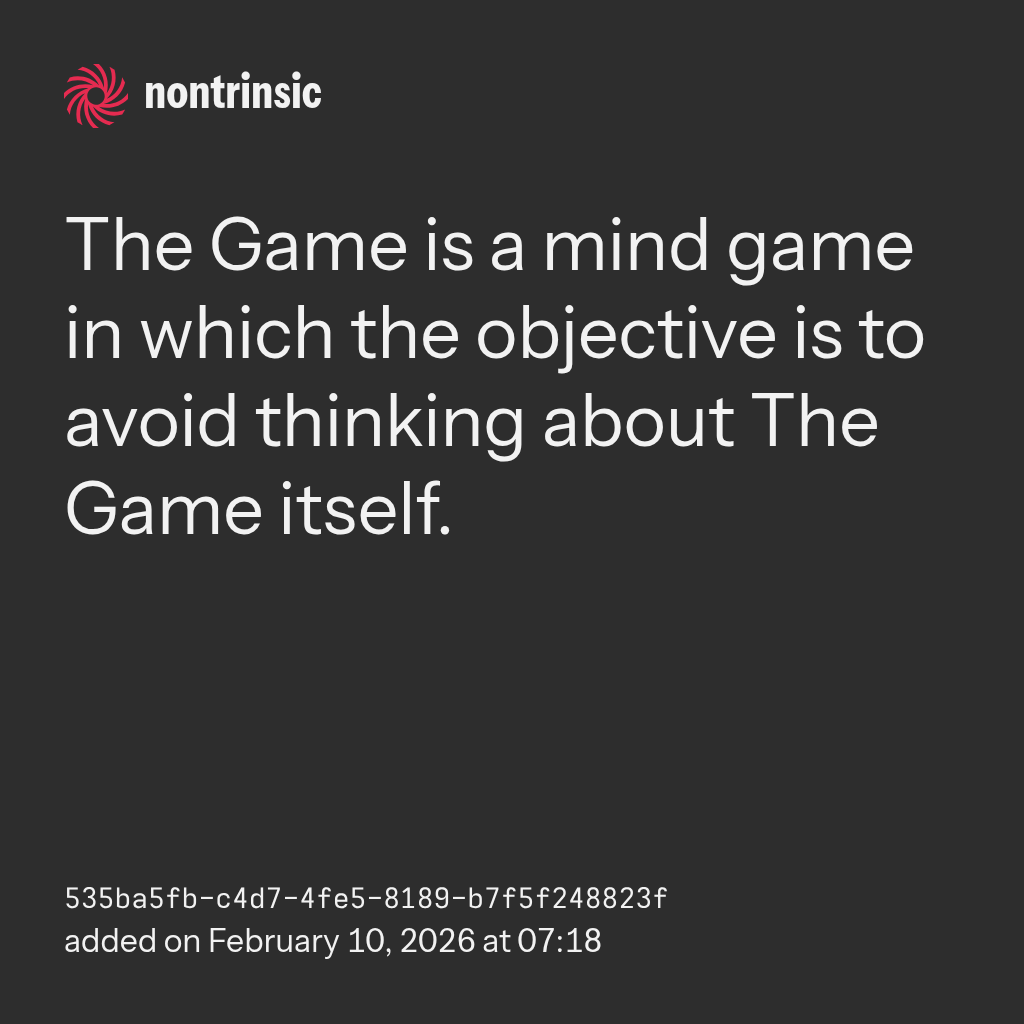 compartirThe Game is a mind game in which the objective is to avoid thinking about The Game itself.