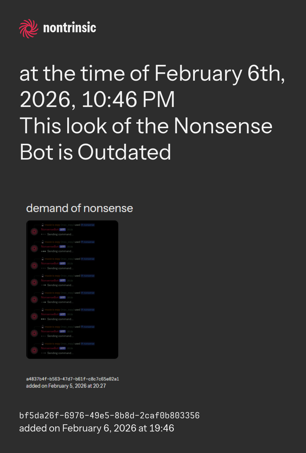This look of the Nonsense Bot is Outdated