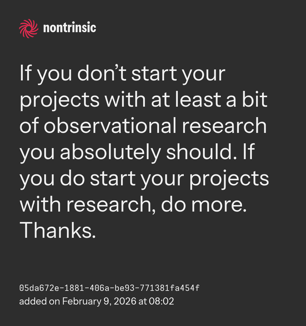 compartirIf you don’t start your projects with at least a bit of observational research you absolutely should. If you do start your projects with research, do more. Thanks.