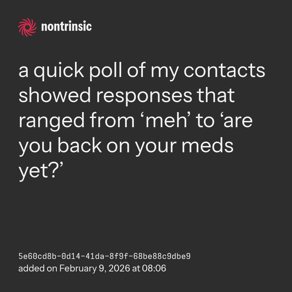 compartira quick poll of my contacts showed responses that ranged from ‘meh’ to ‘are you back on your meds yet?’