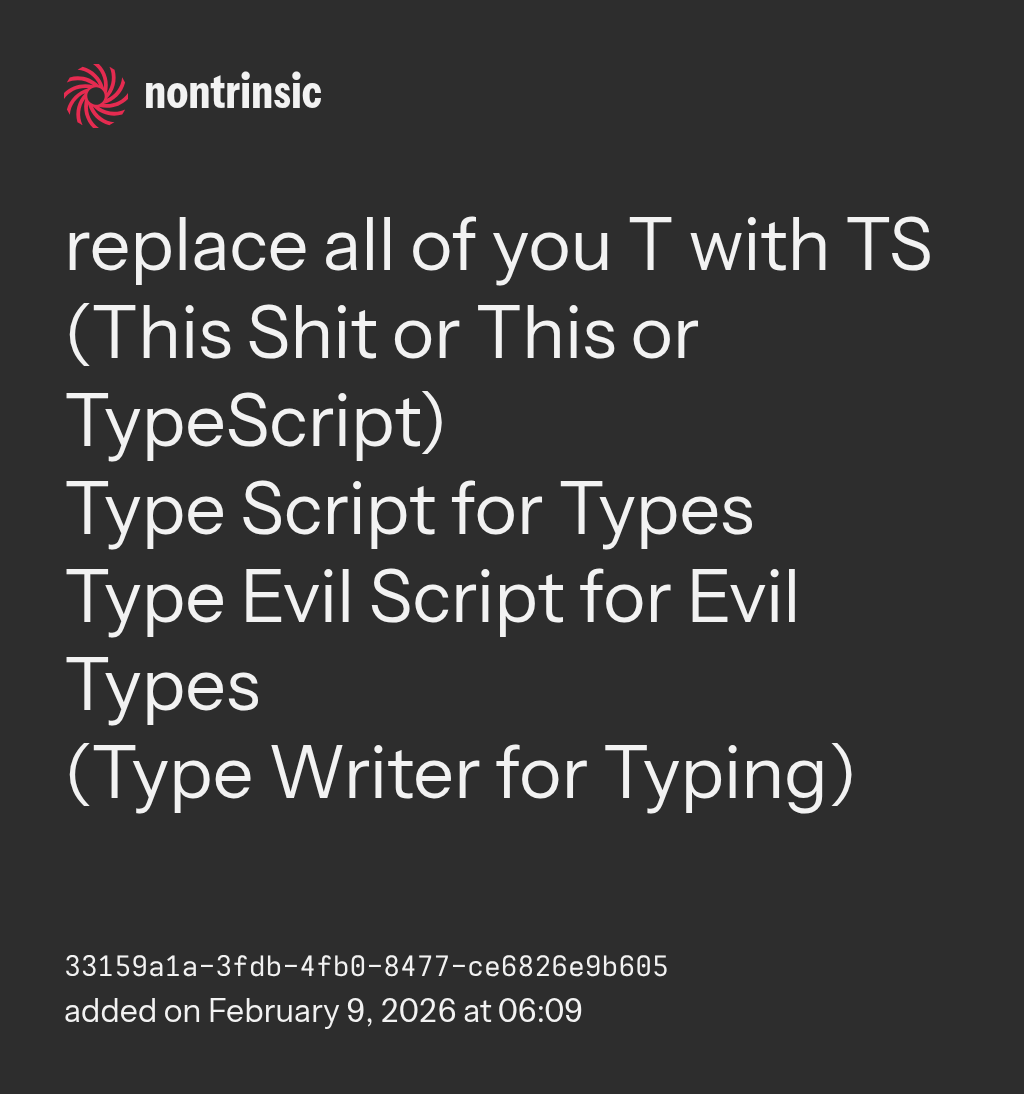 compartirreplace all of you T with TS (This Shit or This or TypeScript)