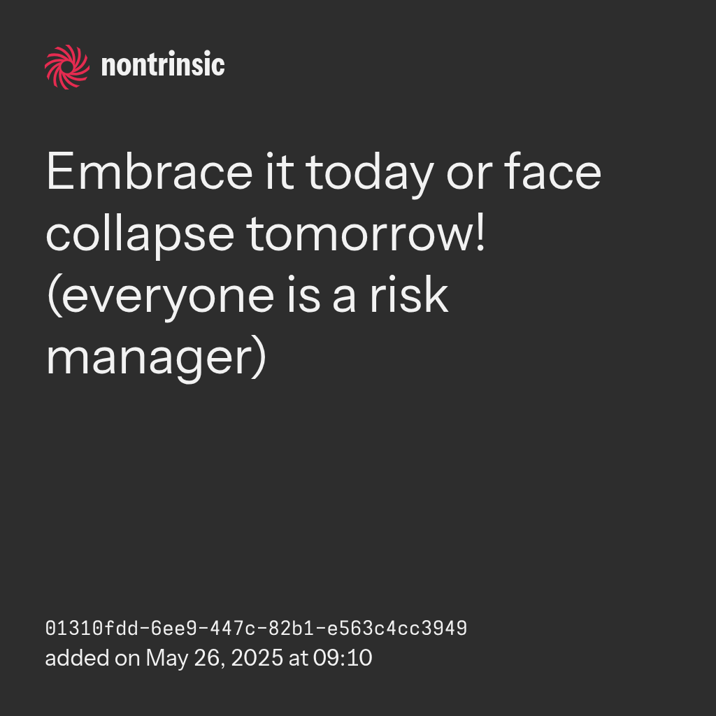 partagerEmbrace it today or face collapse tomorrow! (everyone is a risk manager)