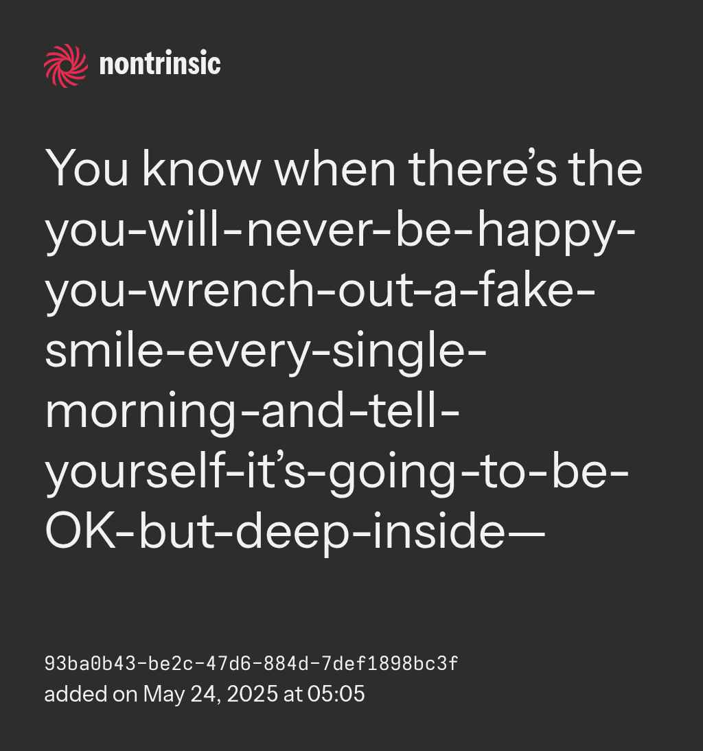 partagerYou know when there’s the you-will-never-be-happy-you-wrench-out-a-fake-smile-every-single-morning-and-tell-yourself-it’s-going-to-be-OK-but-deep-inside—