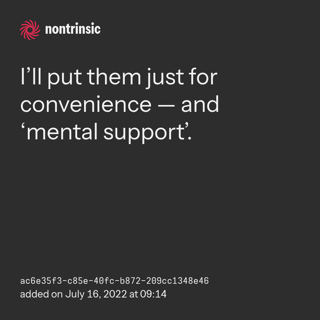 partagerI’ll put them just for convenience — and ‘mental support’.