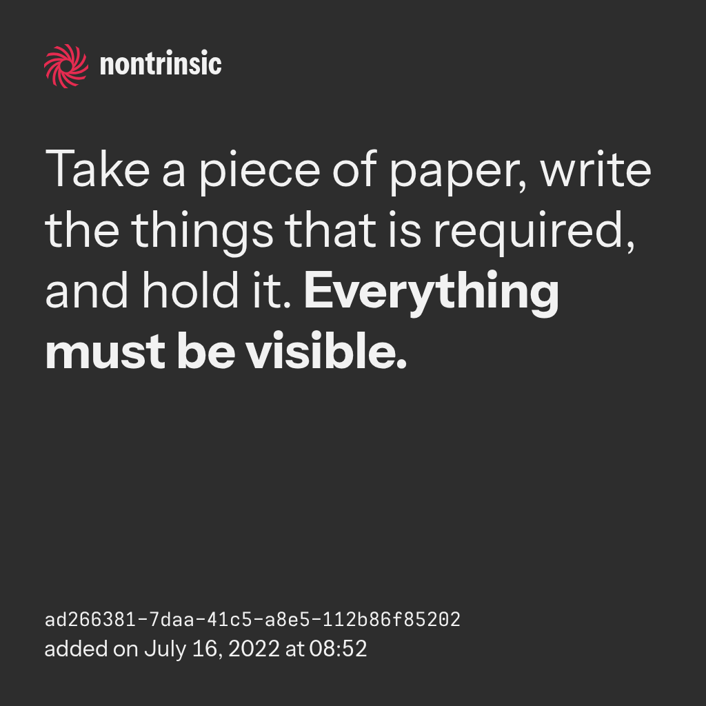 partagerTake a piece of paper, write the things that is required, and hold it. Everything must be visible.