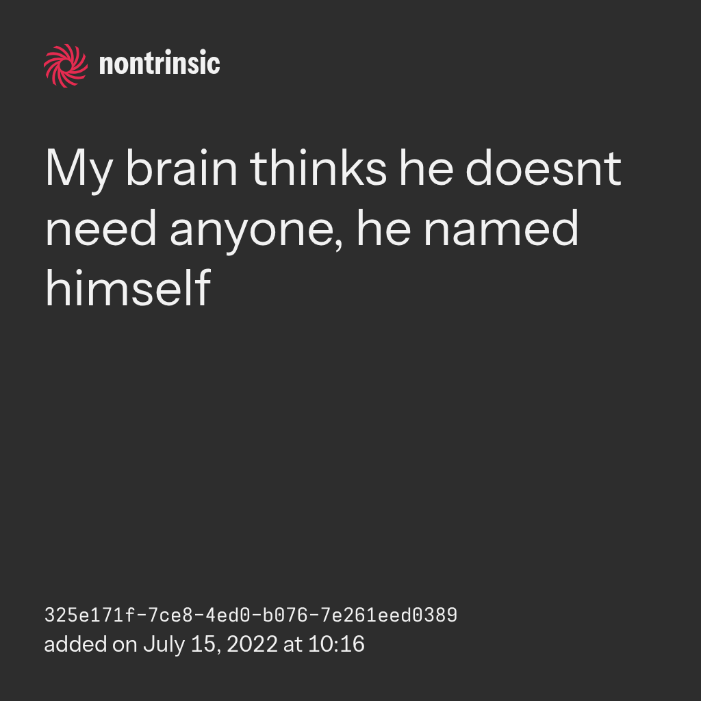 partagerMy brain thinks he doesnt need anyone, he named himself