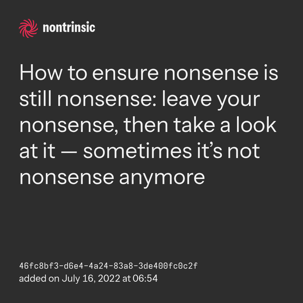 partagerHow to ensure nonsense is still nonsense: leave your nonsense, then take a look at it — sometimes it’s not nonsense anymore
